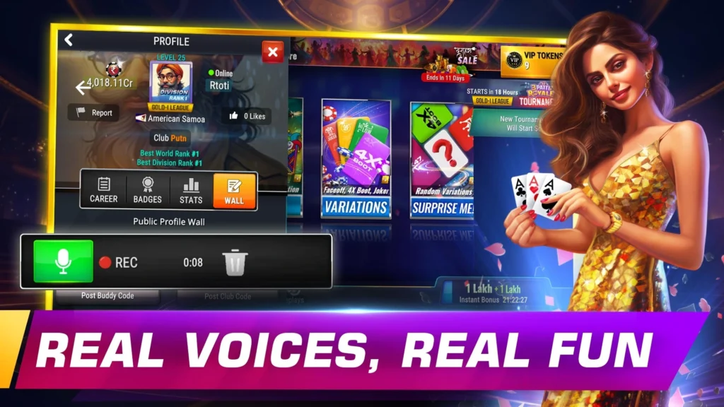 π Become the Champion: Rise through the ranks, conquer tournaments, and build your legacy as the ultimate Teen Patti champion!